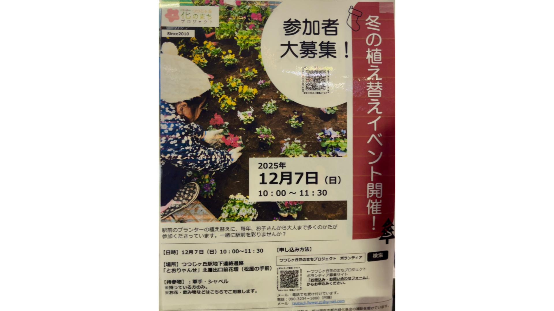 | 2.花の植え替えイベント | 年に2回ほど実施します(参加は任意です)。ボランティアスタッフ以外の参加もOKです。 |